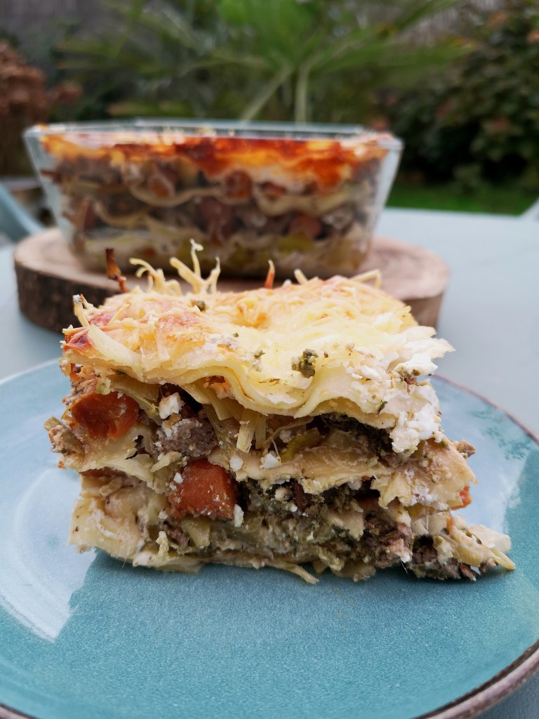 Après la tartine au pesto et feta, voici donc ma recette de lasagnes aux carottes, poireaux et pesto de fanes de carottes.