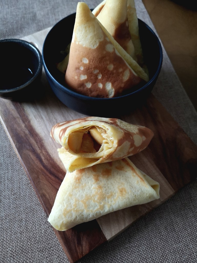 Ce week-end, c’est la Chandeleur ! L’occasion idéale d’utiliser du caramel de pommes pour réaliser des crêpes gourmandes pliées en forme de samoussas.