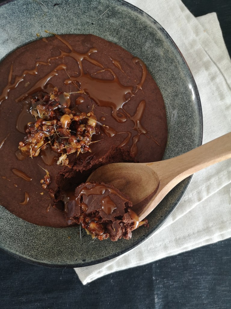 On se retrouve avec une nouvelle recette pleeeeine de gourmandise : la mousse au chocolat surmontée de pignons de pin soufflés et nappés de caramel.