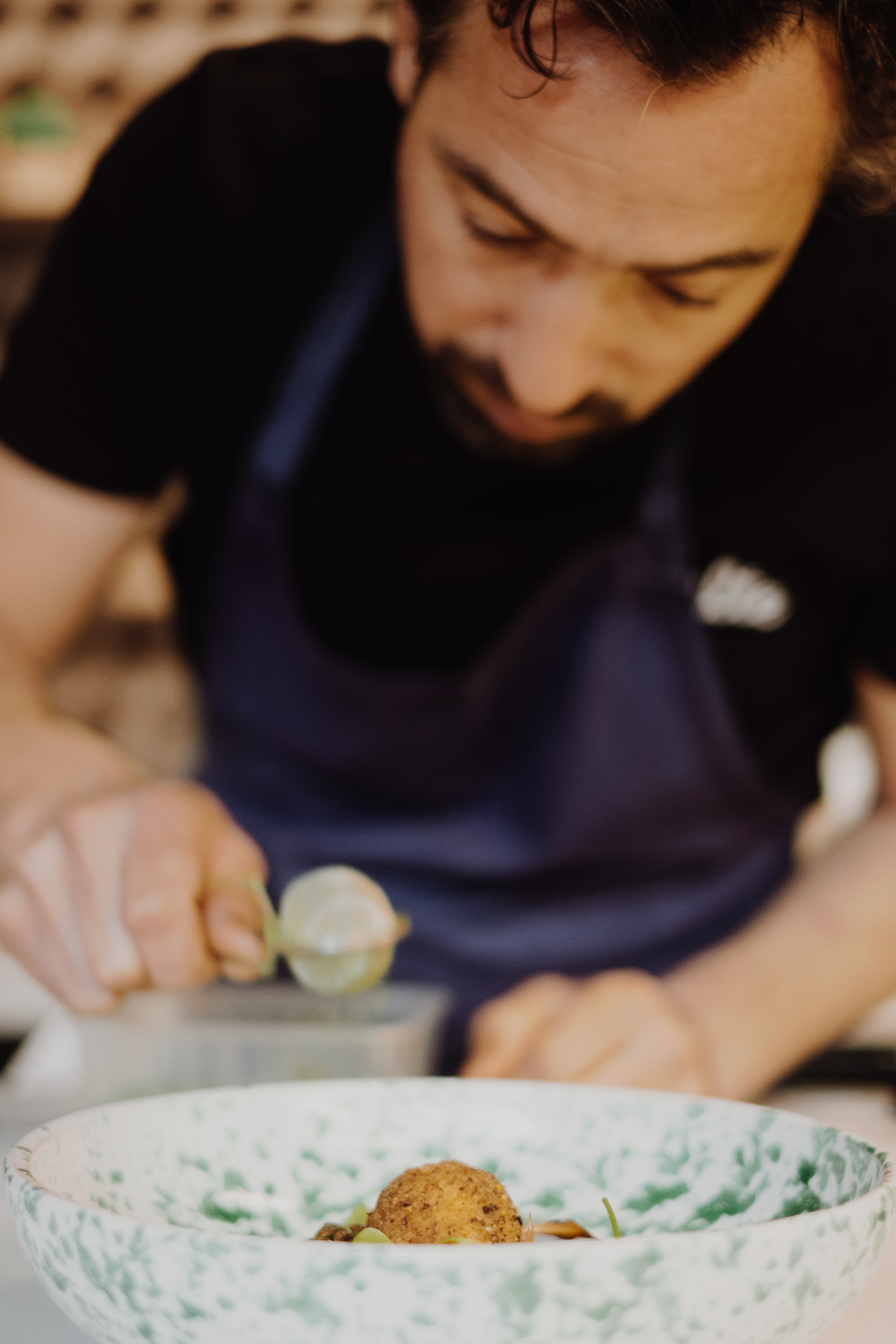 Mais là où le chef semble le plus s’amuser, c’est avec le pain rassis. « J’en fais bien sûr de la chapelure avec laquelle je prépare des recettes sympa comme un œuf en croûte de pain de campagne. Un autre truc très con : tu prépares une purée de pommes de terre, tu mets de la chapelure dessus et tu fais gratiner au four, c’est super bon ! Aussi, tu peux couper le pain rassis en dés, tu bats avec de l’huile d’olive, du vinaigre et tu écrases pour obtenir une pâte. Tu ajoutes des anchois, des herbes (menthe, persil, basilic), sel, poivre, ail, tu fais une boule un peu comme des keftas et tu fais cuire au four. Tu sers ça avec des anchois ou des maquereaux marinés à l’apéro, t’es bien ! »