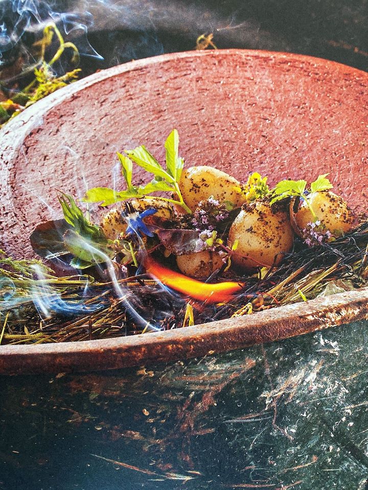 Après la recette des carottes lacto-fermentées Sang-Hoon Degeimbre, chef doublement étoilé de L’Air du Temps en Belgique, a accepté de partager avec nous une nouvelle recette hyper alléchante : les pommes de terre nouvelle au terreau d’olives noires et pain rassis.
