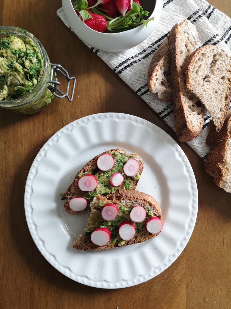 Aujourd’hui, on va préparer une recette simple de beurre de fanes de radis, avec lequel vous pourrez faire des belles tartines beurre/radis un peu plus parfumées qu’à l’accoutumée.