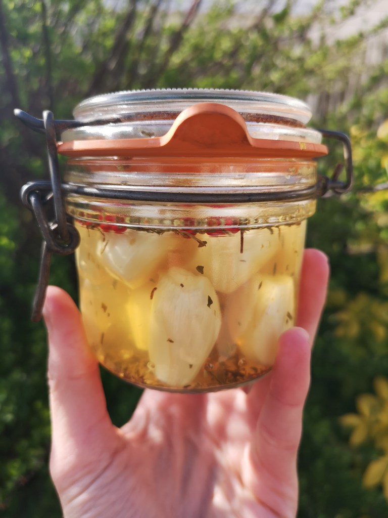 Après les pickles d’oignons rouges, voici la recette des pickles d’ail !