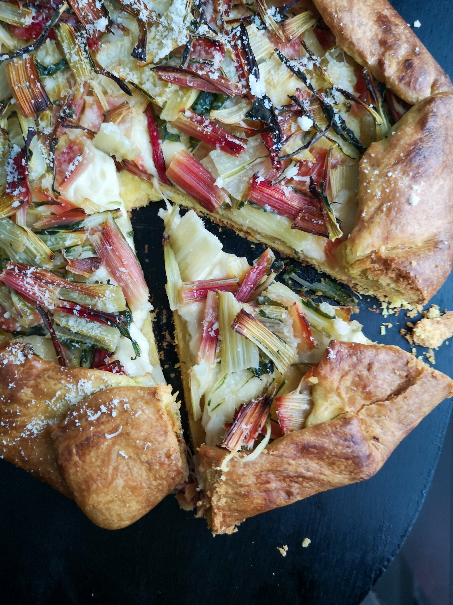 Contrairement à ce que l’on pourrait croire en voyant la photo ci-dessous, ceci n’est pas une tarte à la rhubarbe mais… aux côtes de blettes !