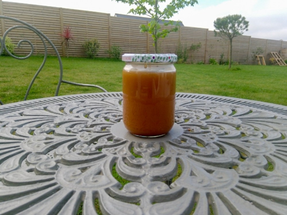 Ajouter 50 gr de beurre demi-sel, mélanger et transvaser dans un pot à confiture.