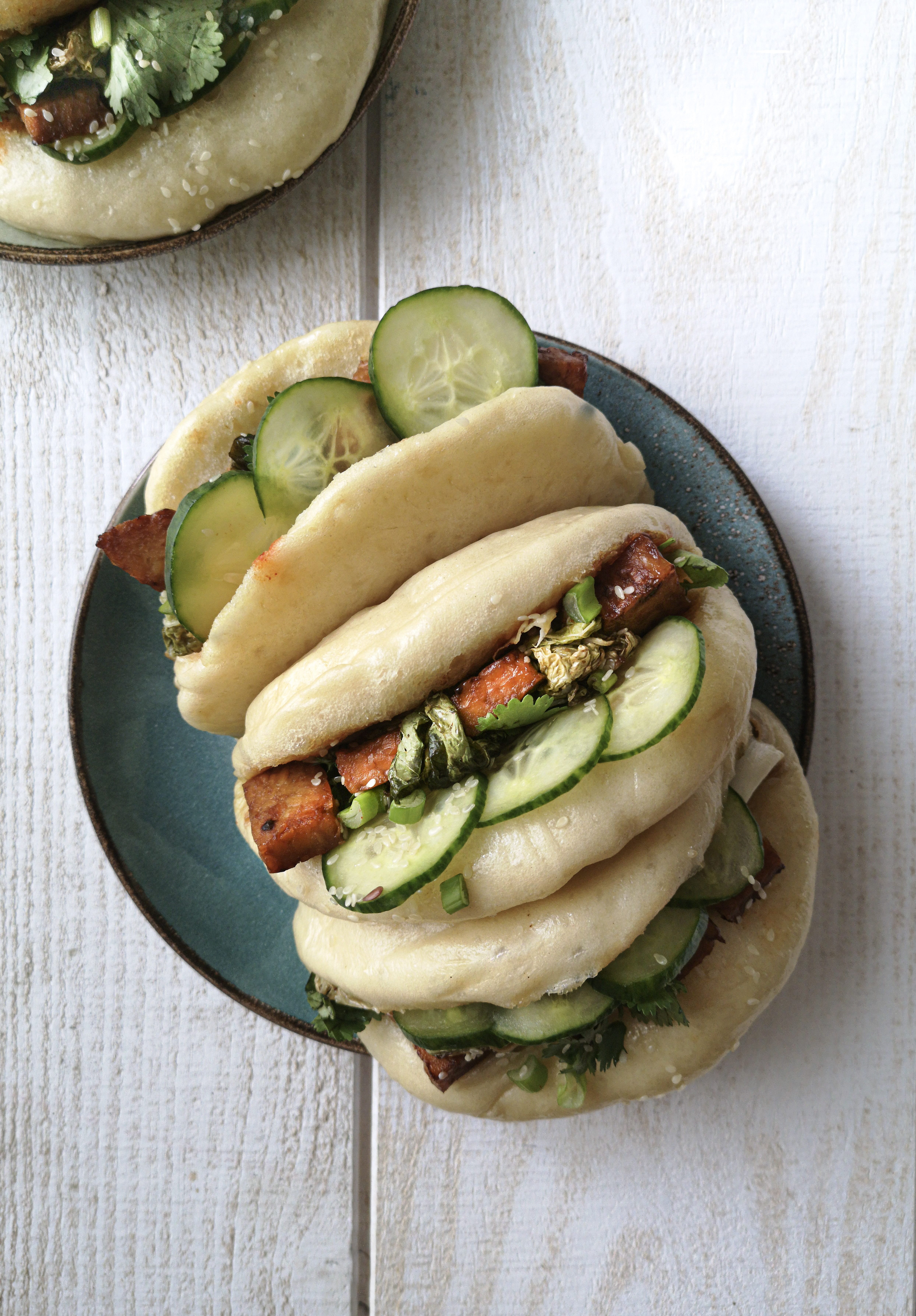 Il y a quelques semaines Maxime Bouttier, chef du restaurant Mensae à Paris, nous avait dévoilé la recette de son kimchi bien corsé. Aujourd’hui, je vous propose de l’intégrer dans une recette de gua bao pour un délicieux dîner aux saveurs asiatiques. J’ai décidé de l’associer avec du tempeh (un produit à base de graines de soja pelées et cuites) et à du chou chinois juste cuit au four.