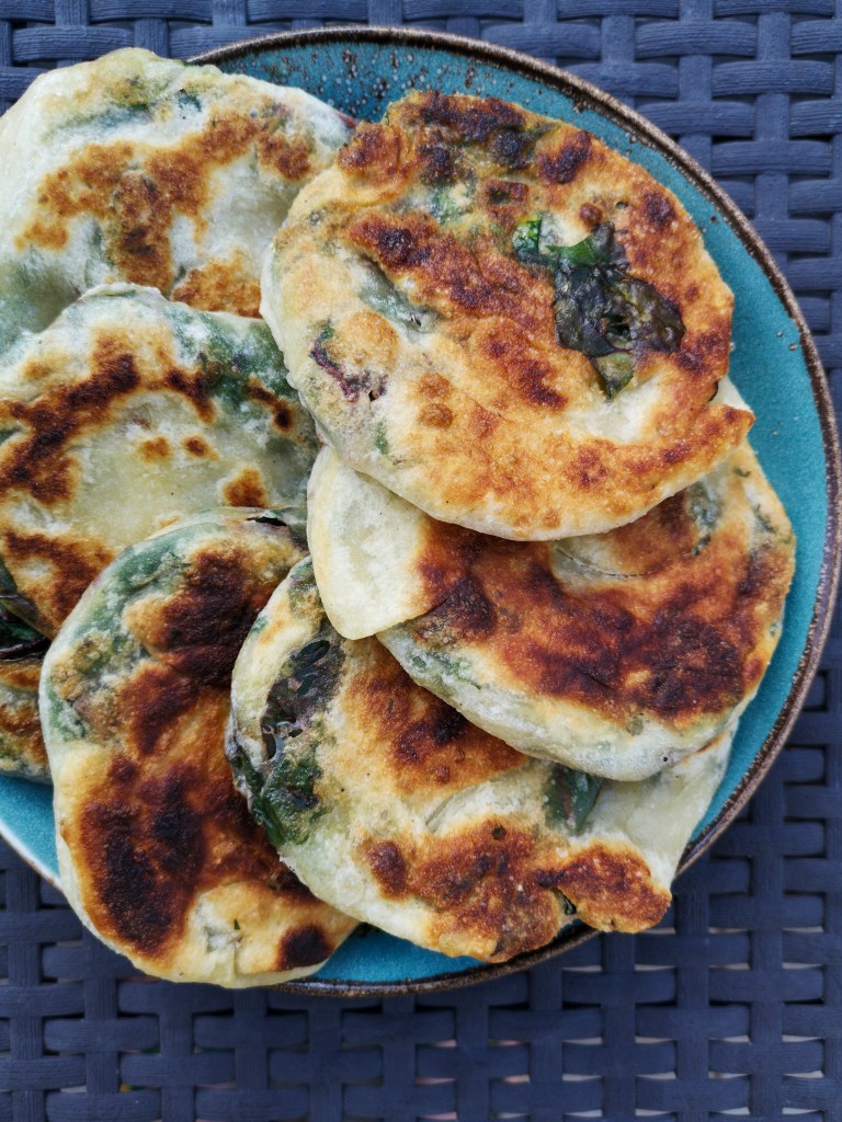 Voici la recette des « scallion pancakes » aux feuilles de chou-rave.