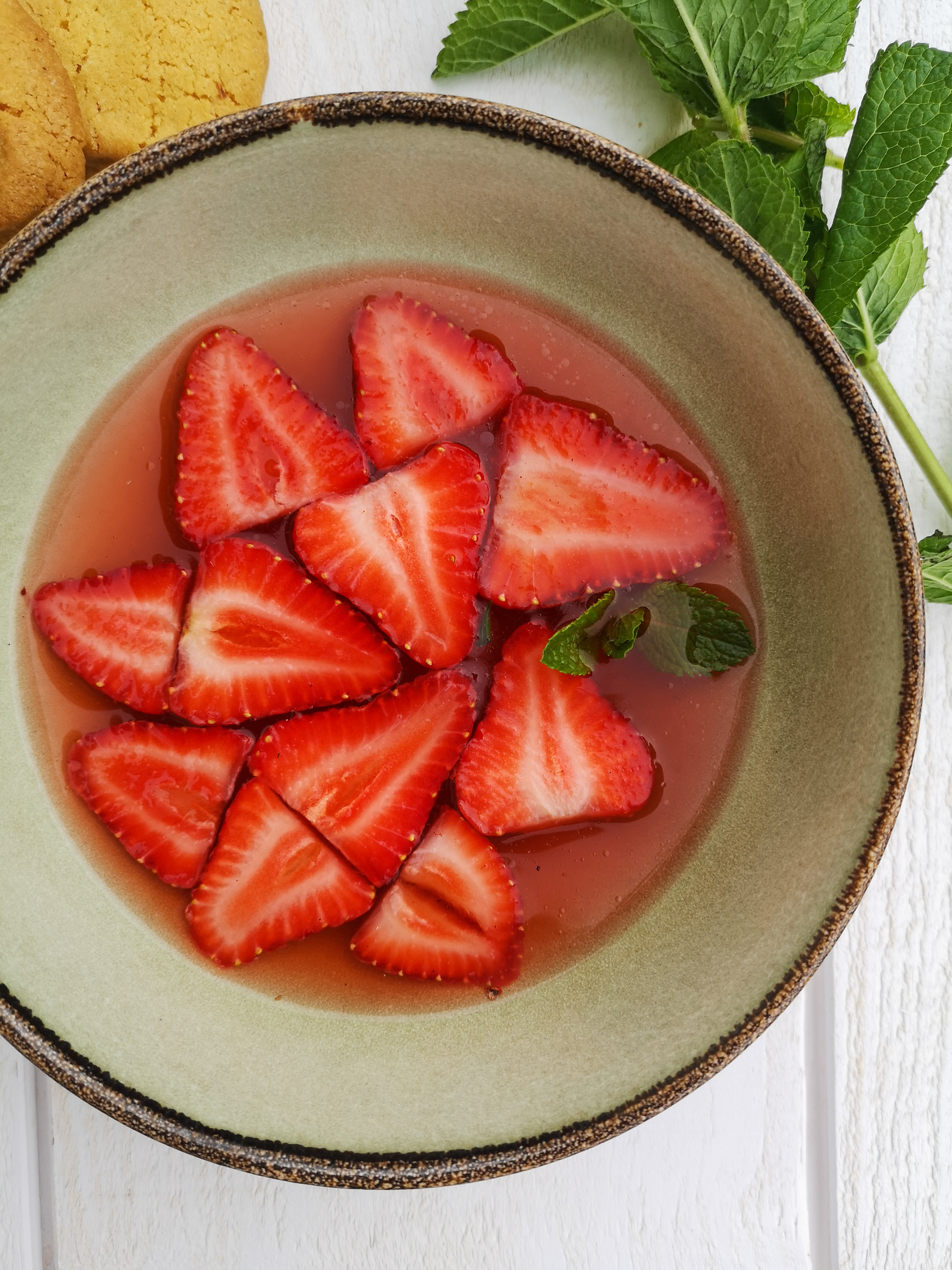 Vous avez préparé un sirop avec des queues de fraises récemment ? Si vous pouvez bien sûr l’utiliser pour aromatiser vos boissons, je vous propose aujourd’hui une alternative avec la nage de fraises.