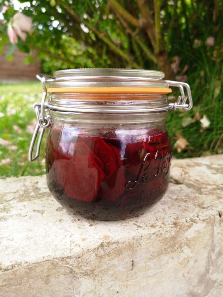Placer ces morceaux de betterave dans un bocal type Le Parfait ou encore un vieux pot de confiture bien lavé.