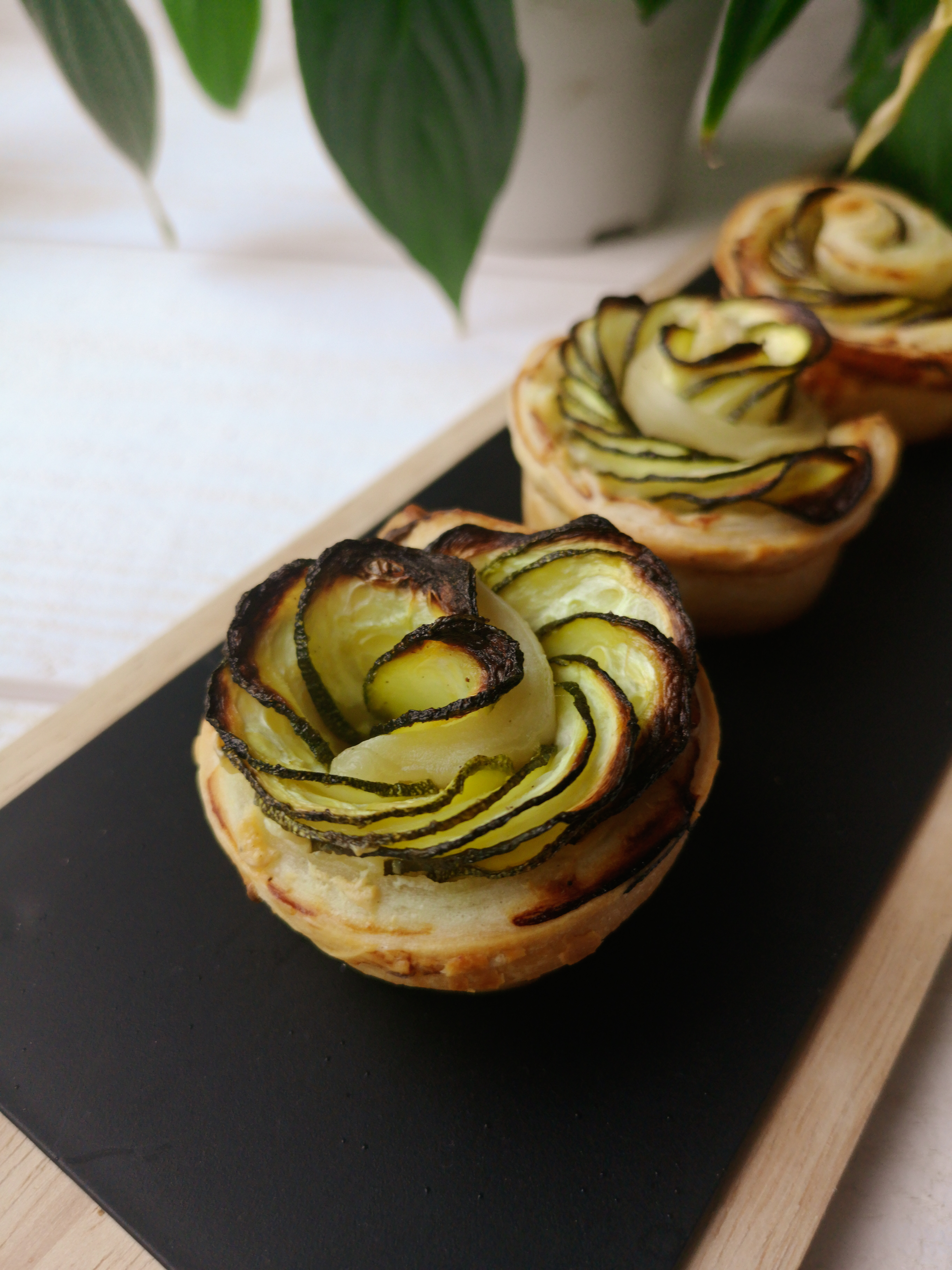 Vous vous demandez quoi faire avec un reste de pâte feuilletée ? Je vous propose une recette toute simple à servir à l’apéritif ou en entrée avec un peu de salade : la rose feuilletée de courgettes.