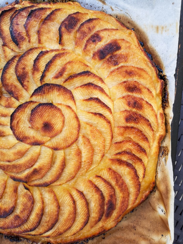 Eh oui, même les grands classiques de la pâtisserie peuvent être anti-gaspi ! Pour cette recette, j’ai en effet utilisé quelques pommes abîmées pour faire une compote, qui sert de base à cette tarte fine très gourmande.