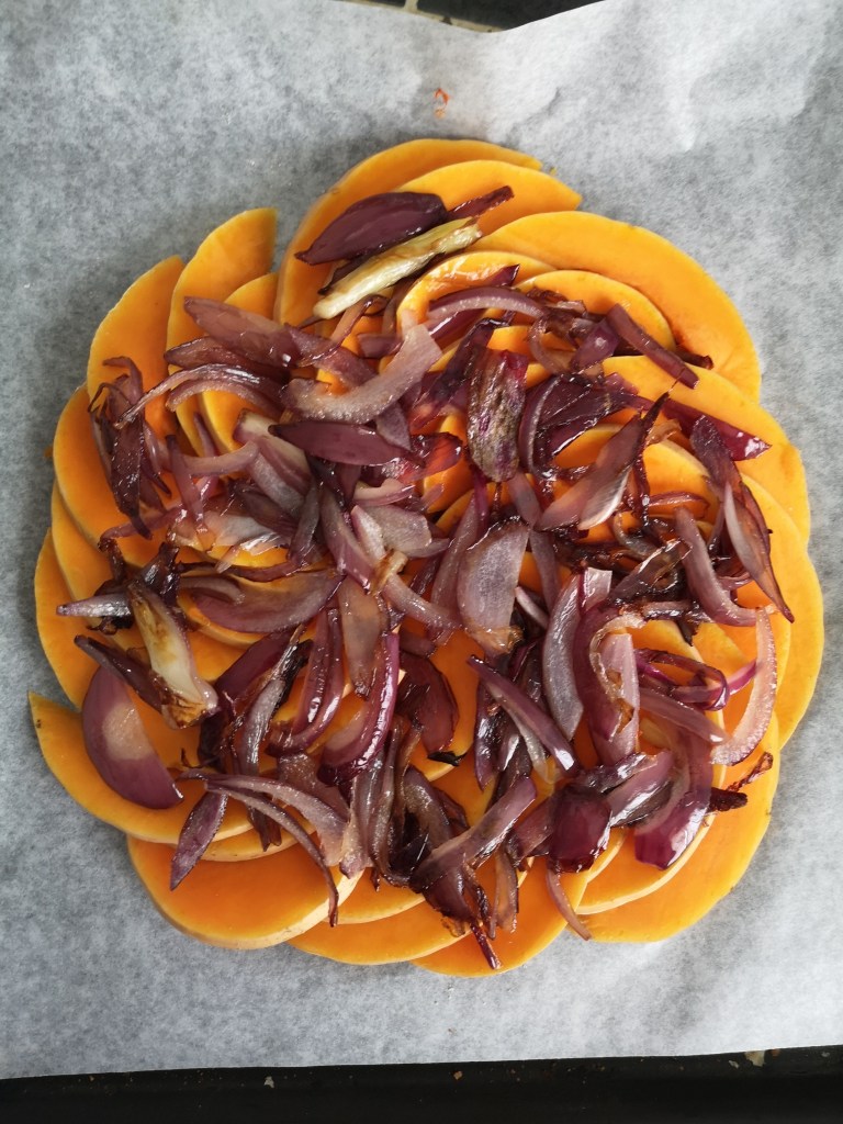Sur une plaque recouverte de papier cuisson, placer les butternut en spirale comme sur cette photo.