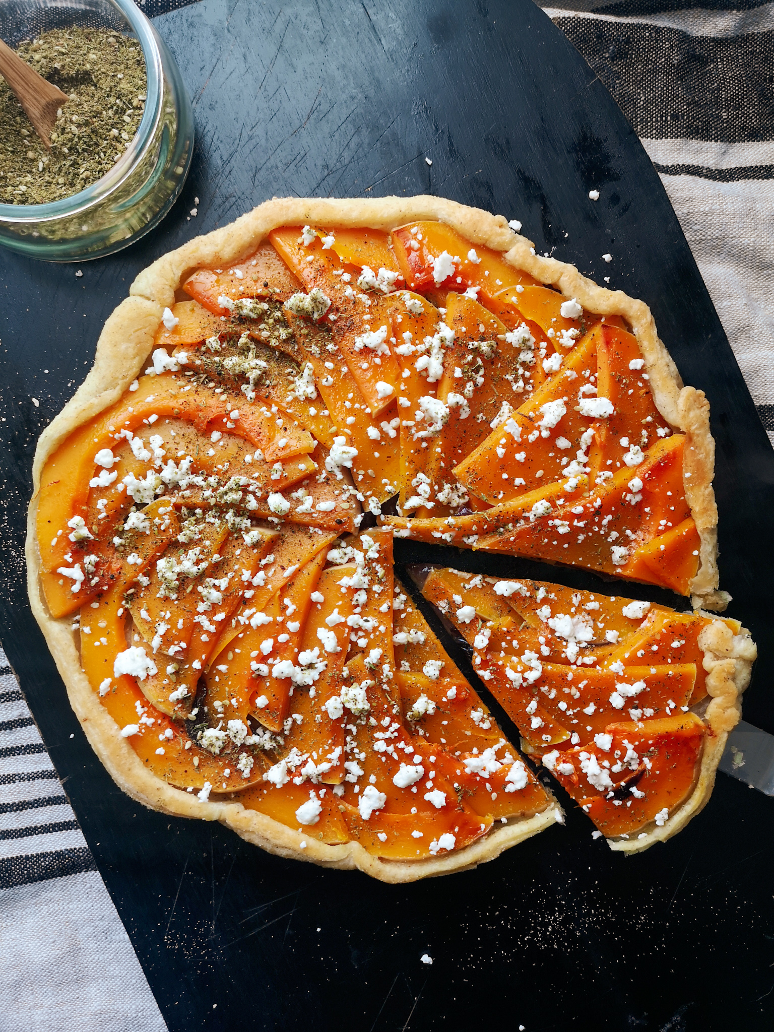 Sortir du four, retourner, ajouter la feta émiettée et saupoudrer de zaatar.