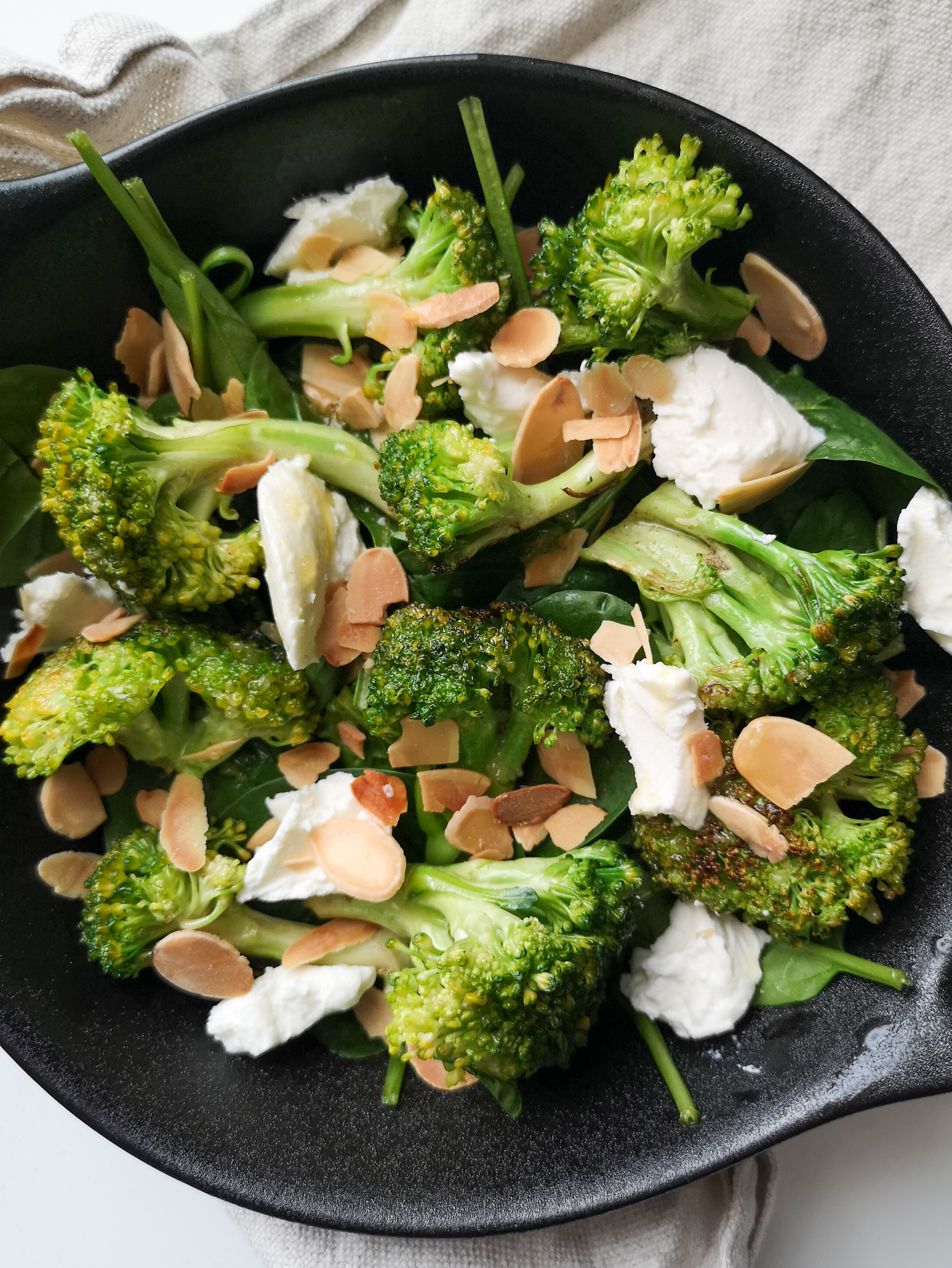 Faire sauter les fleurettes de brocolis à la poêle quelques minutes, avec un peu d’huile d’olive.