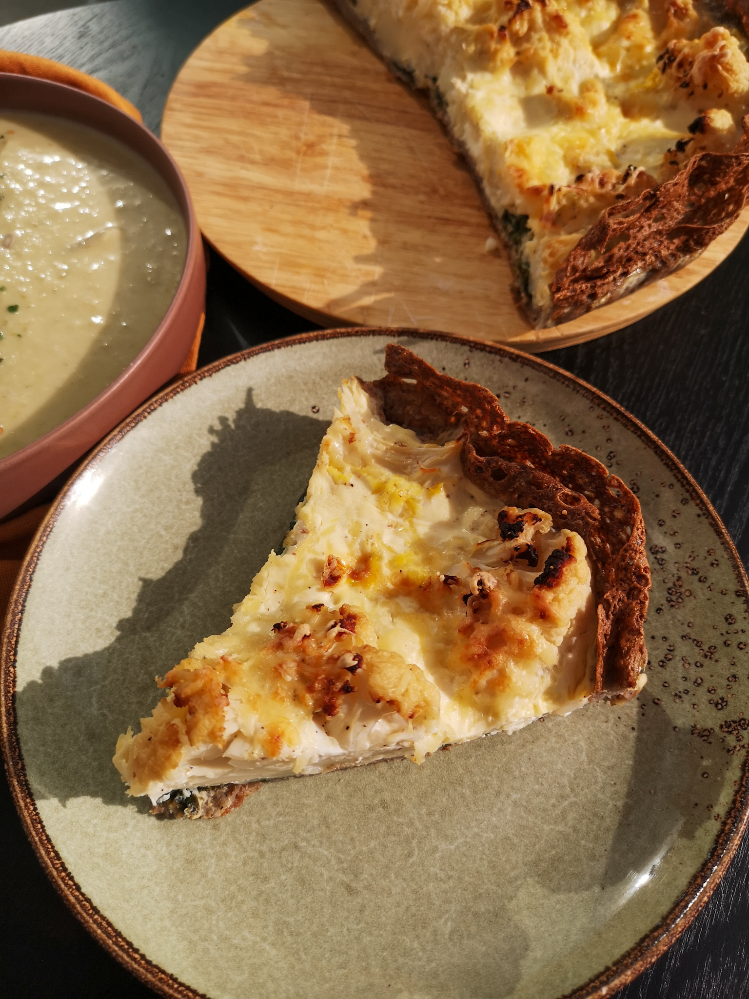 C’est parti pour la première recette de tarte au chou-fleur sur fond de galettes de sarrasin.