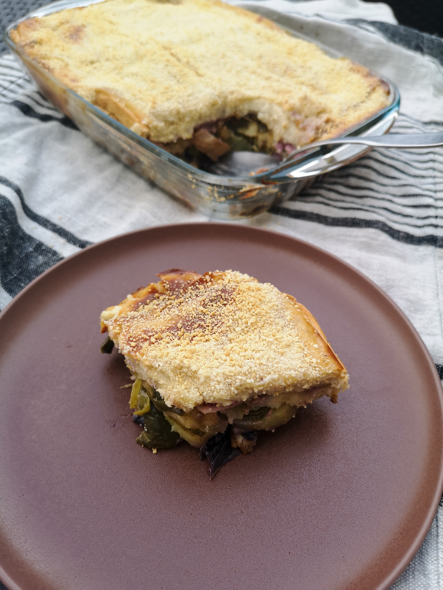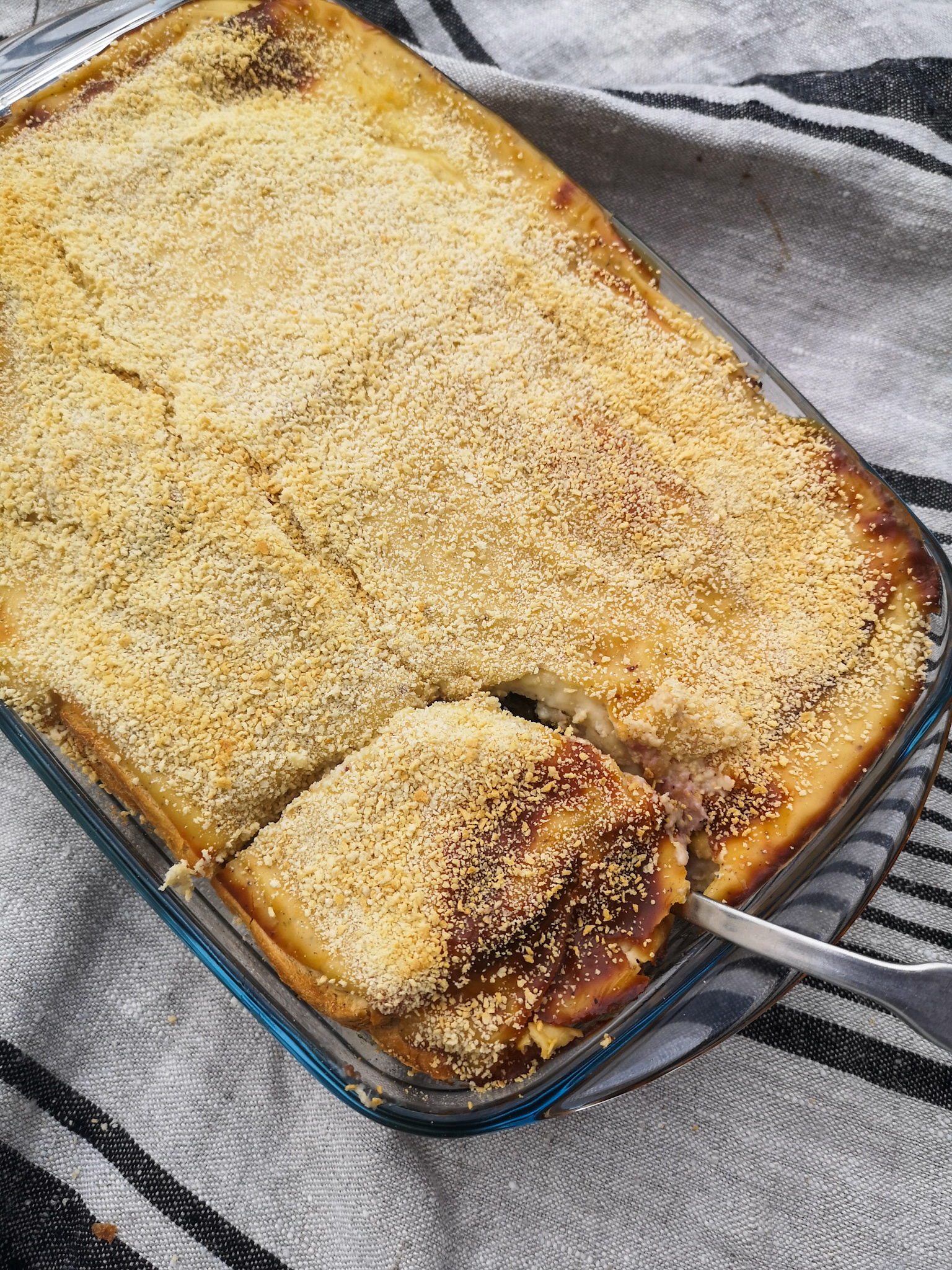 Sur ces trois paquets, j’en ai congelé une bonne moitié dans un sac de congélation hermétique. Pour le reste, j’ai eu l’idée d’utiliser ce pain de mie à la place des feuilles de lasagnes. Et croyez-moi, le résultat est très gourmand ! On obtient un plat bien gratiné avec un petit goût de pain perdu salé très régressi. N’hésitez pas à me faire vos retours si vous essayez.
