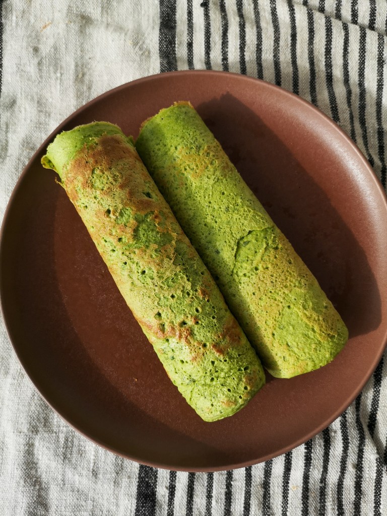 Faire chauffer un peu d’huile dans une poêle et verser une belle louche de préparation. Quand la surface commencer à buller, retourner la crêpe et cuire l’autre face.